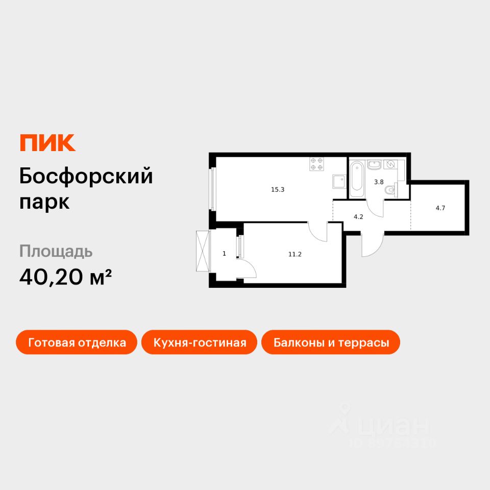 Продаётся 1-комн. квартира площадью 40,2 кв.м на 8 этаже 9 этажного дома (Корпус 4, Секция 1) проекта ПИК Босфорский парк. Светлый просторный подъезд на уровне земли, функциональная планировка, большие окна, c отделкой.