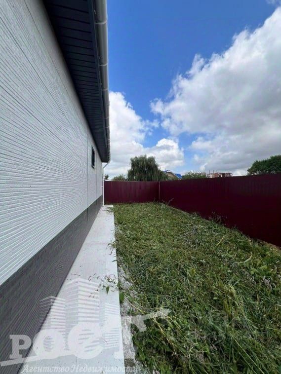 Дом выполнен из газоблока. Утеплитель толщиной 8 см гарантирует сохранение тепла в зимнее время и комфортный микроклимат в летний период. Фасад обшит сайдингом Ханья. Мягкая черепица на крыше также является отличным выбором, так как обеспечивает надежную защиту от дождя и снега.