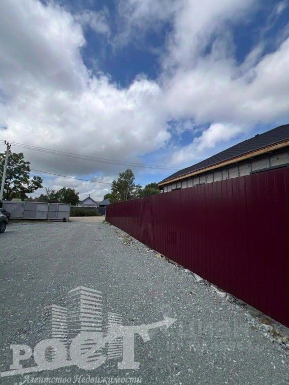 По периметру участка установлен забор из профлиста с откатными воротами. Имеется парковочное место для автомобиля.