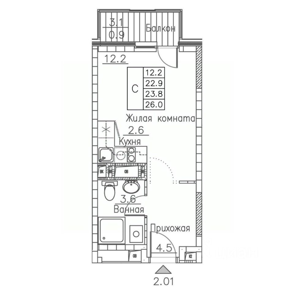 Общая площадь26 м2