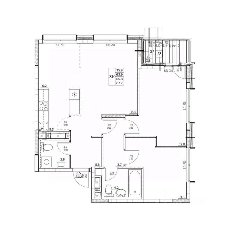 Общая площадь67,7 м2