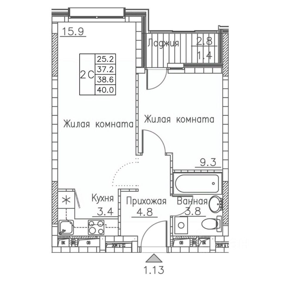 Общая площадь40 м2