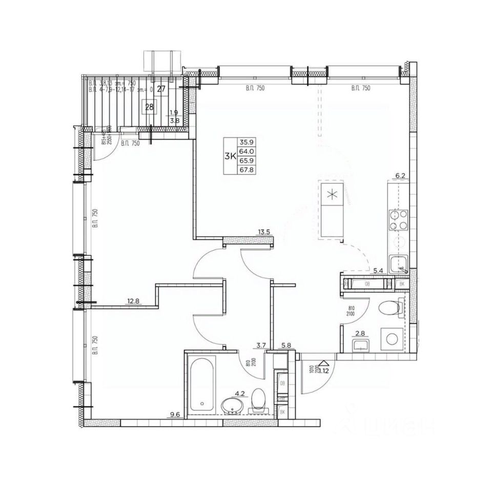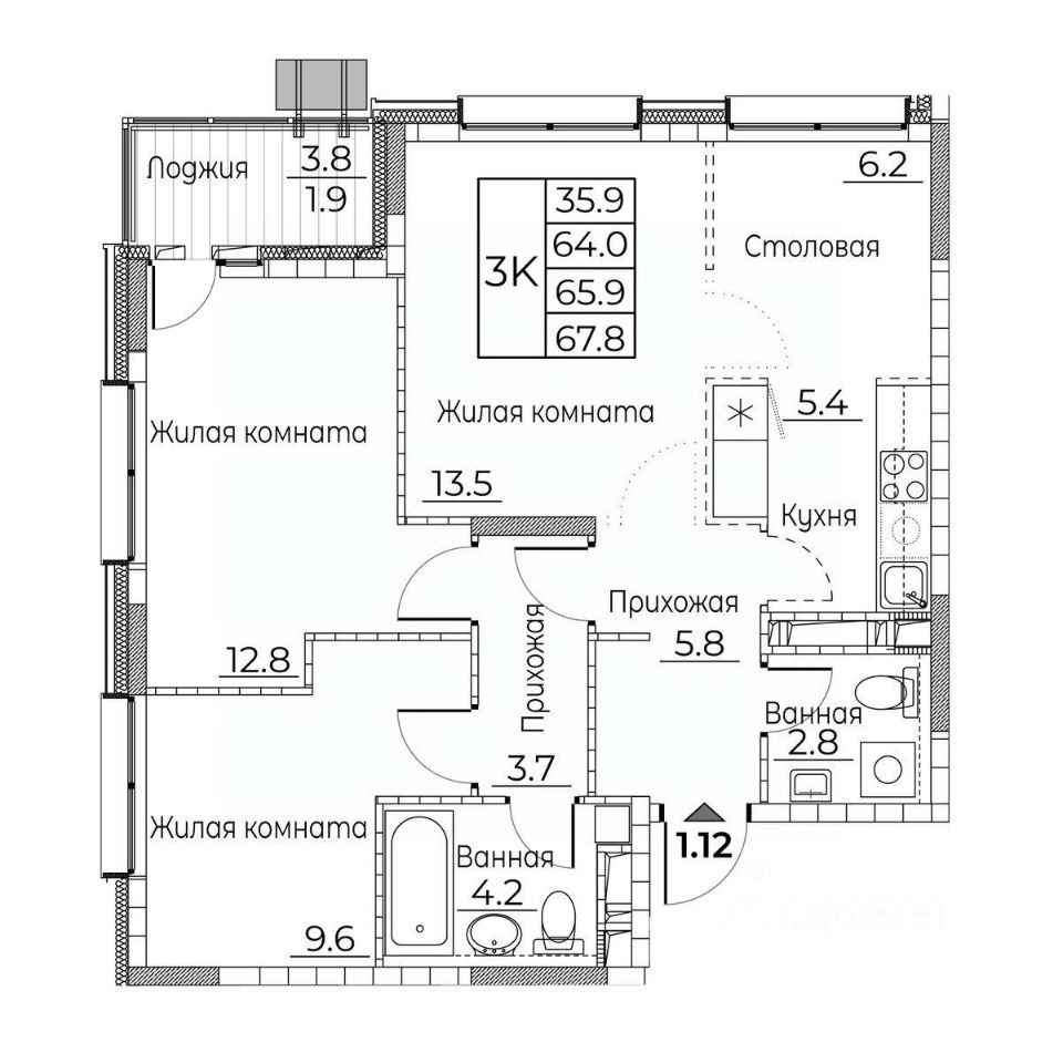 Общая площадь67,8 м2