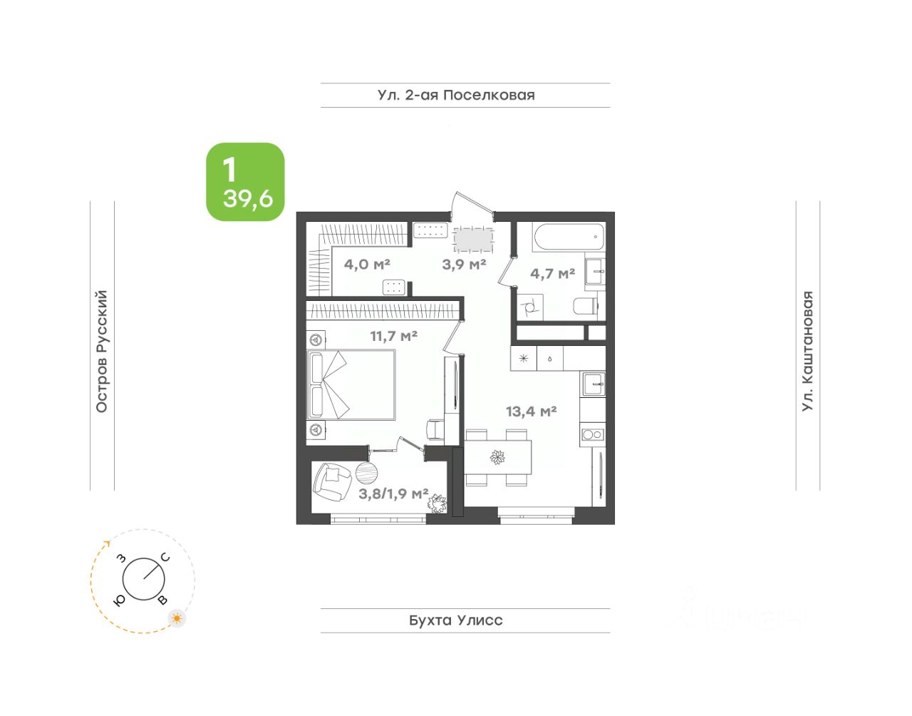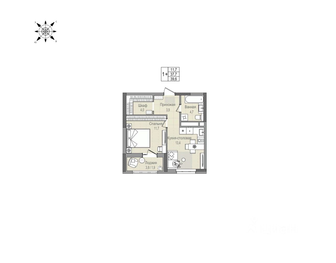 Уютное пространство для самостоятельной жизни Просторная прихожая 3,9 кв.м c Кухня-столовая 13,4 кв.м место для ваших кулинарных экспериментов Спальня 11,7 кв.м с выходом на лоджию, где можно наслаждаться свежим воздухом и красивым видом на окружающий пейзаж Гардеробная 4 кв.м в спальне для хранения вещей и порядка в квартире Ванная 4,7 кв.м с местом под стиральную машину