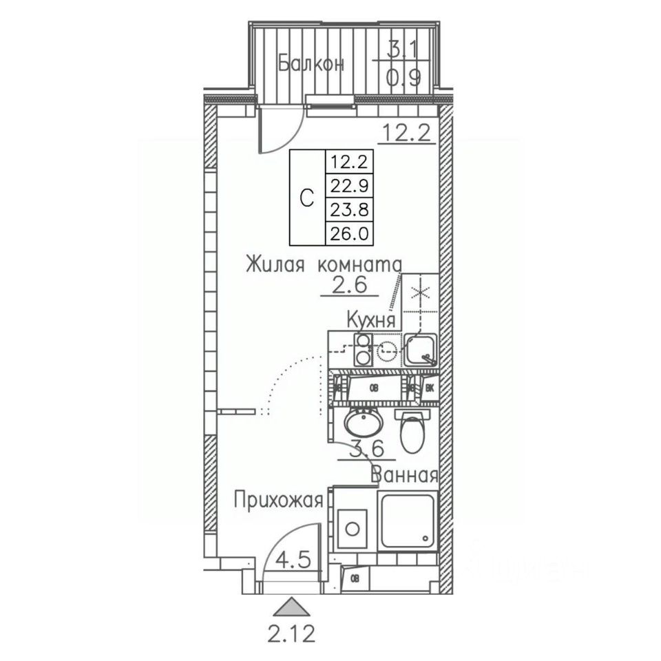 Общая площадь26 м2