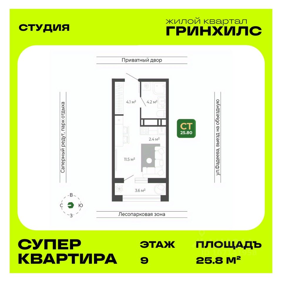 Продается студия в ЖК ''Гринхилс''. Отделка - whitebox, санузел - под ключ. Общая площадь квартиры — 25.8 кв. м, этаж 9 из 19. Тип дома — монолитный. Цена указана при 100% оплате.