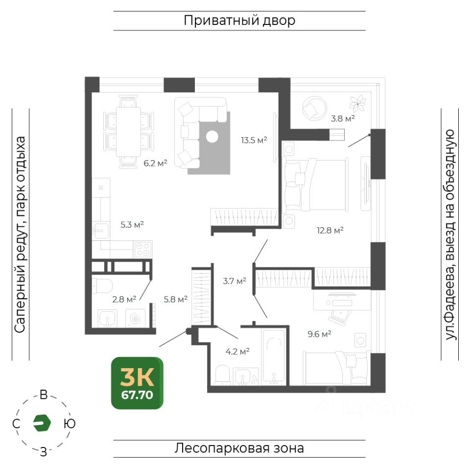 Общая площадь67,7 м2