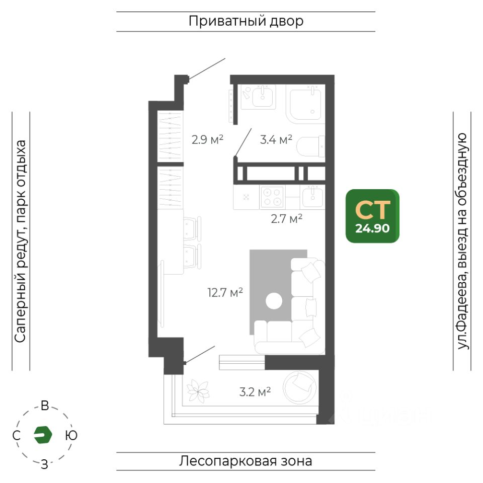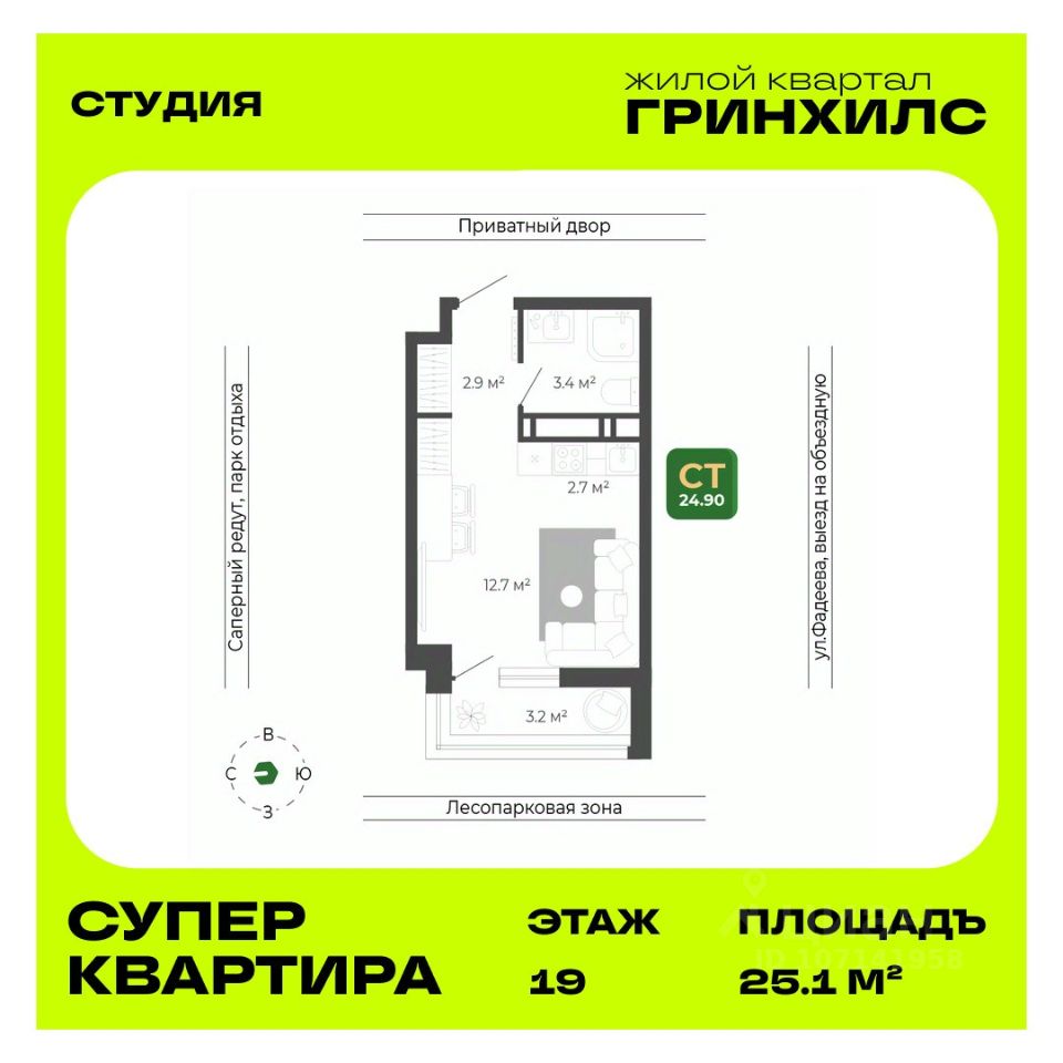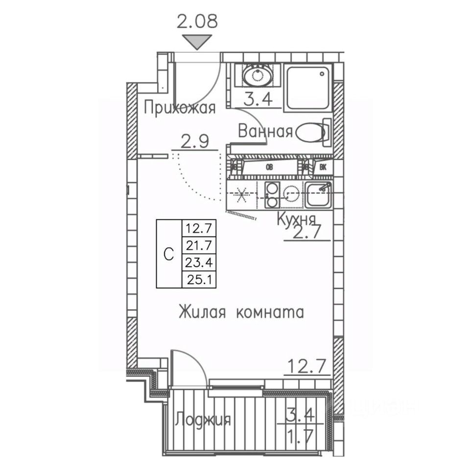 Общая площадь25,1 м2
