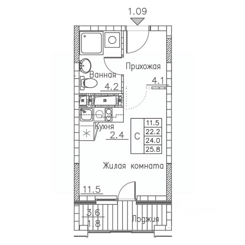Общая площадь25,8 м2