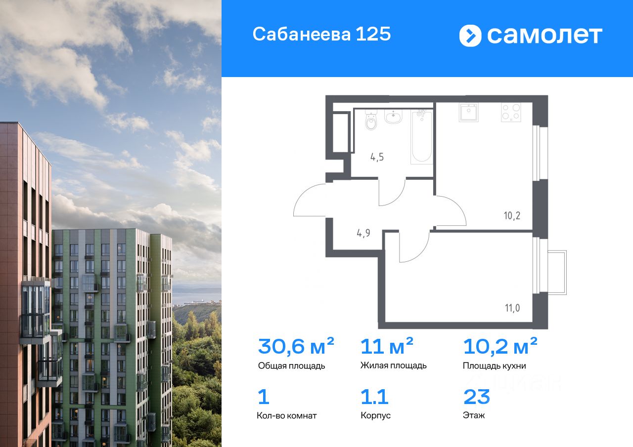Строим кварталы для жизни с заботой о будущем. Предлагается 1-комнатная квартира комфорт-класса 30,6 кв.м в корпусе 1.1 на 23 этаже, в ЖК ''Сабанеева 125'' Квартира с чистовой отделкой. Доступность дополнительных опций уточняйте у застройщика.