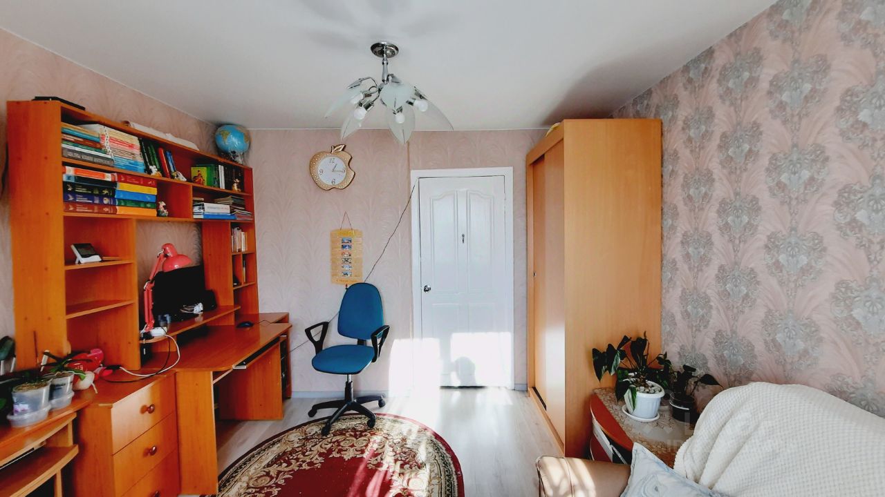 Два дивана, стенка, кухонный гарнитур, стол обеденный и стулья, компьютерный стол, шкаф, шкаф-купе, туалетный стол с зеркалом, угловой шкаф в прихожей. Стиральная машинка-автомат, телевизор, микроволновая печь, холодильник, бойлер, электроплита.