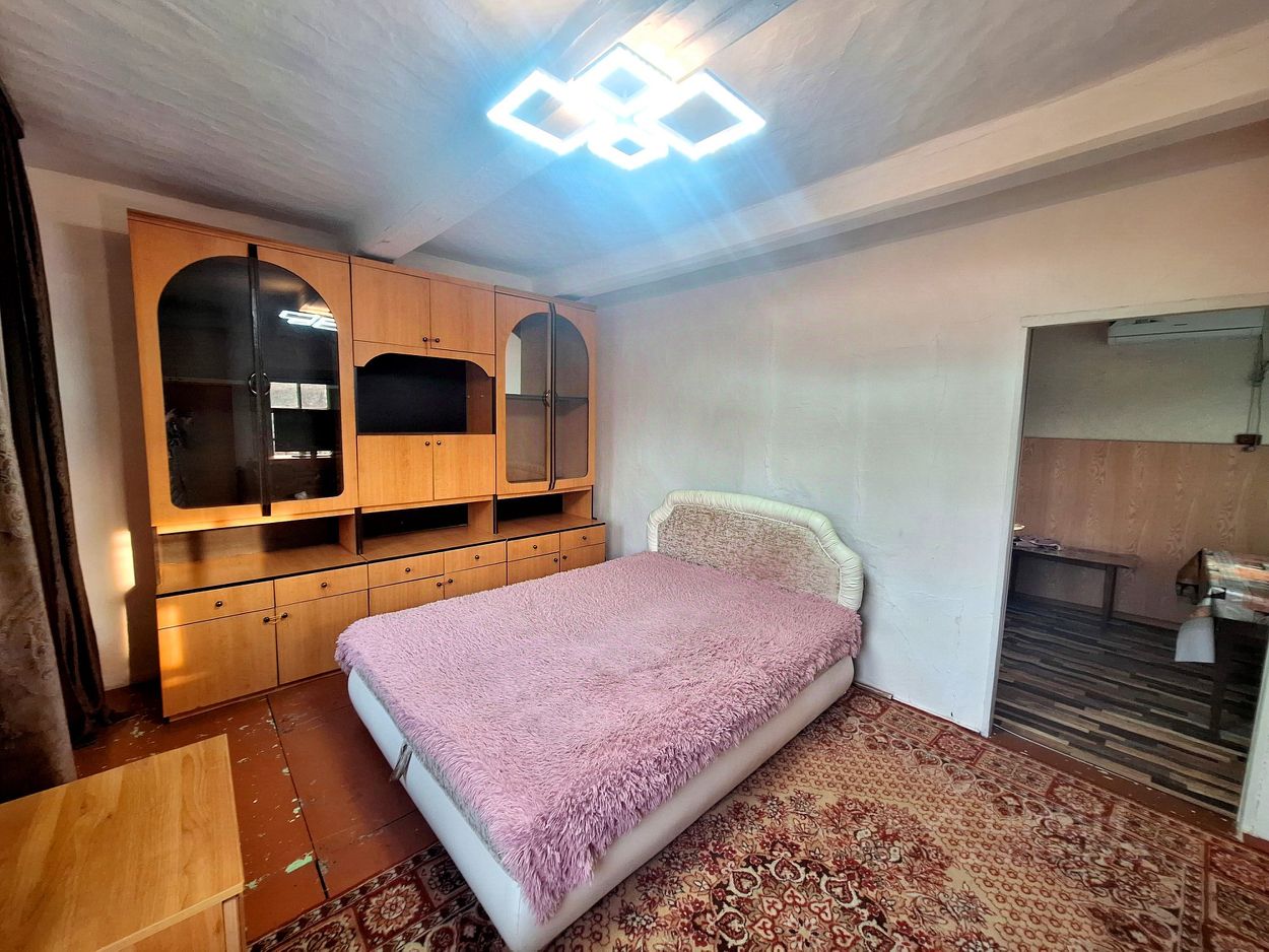 МЕБЕЛЬ И ТЕХНИКА *спальня: стенка-горка, диван, две тумбы, *кухня-прихожая: стол обеденный, холодильник, печь микроволновая *пристройка: кух.гарнитур, обеденная зона: диван, плита газовая (две конфорки) + электрическая (две конфорки), два дивана в комнате, стиральная машинка, два электрических насоса для воды.