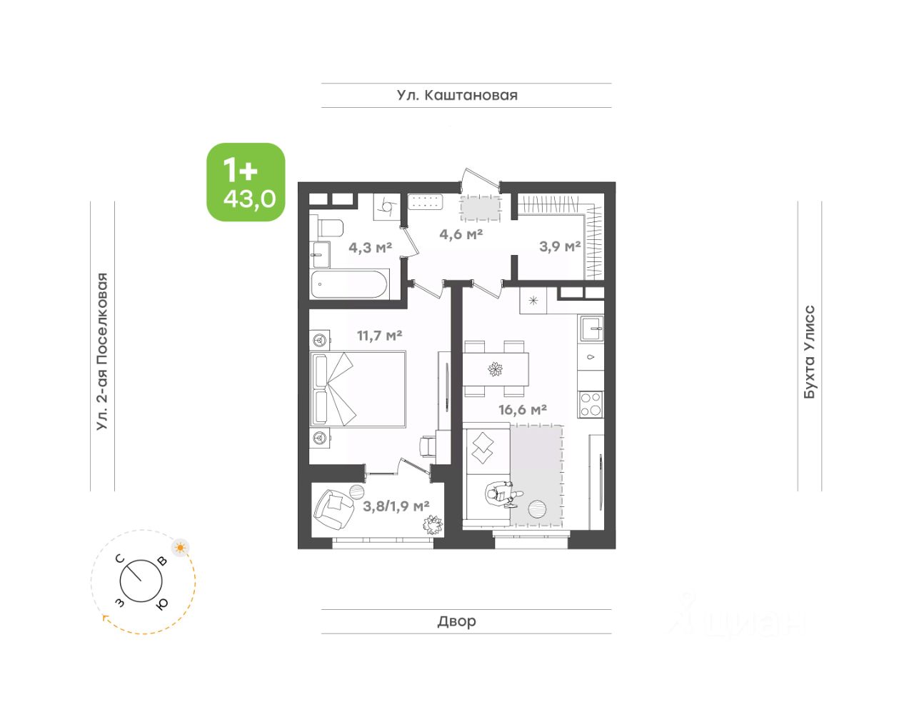 Просторная прихожая 4,6 кв.м с гардеробной 3,9 кв.м, где удобно организовать хранение вещей