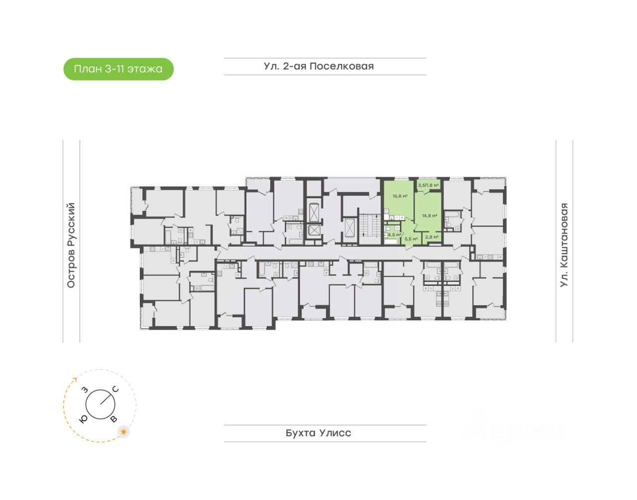 Уютное пространство для самостоятельной жизни Просторная прихожая 5,5 кв.м с местом для шкафа Кухня-столовая 16,8 кв.м место для ваших кулинарных экспериментов и отдыха за домашним кинотеатром Спальня 14,8 кв.м с выходом на лоджию, где можно наслаждаться свежим воздухом и красивым видом на окружающий пейзаж Гардеробная в спальне 2,8 кв.м позволит аккуратно разместить вещи, освободив место в комнате Ванная комната 4,5 кв.м с местом под стиральную машину