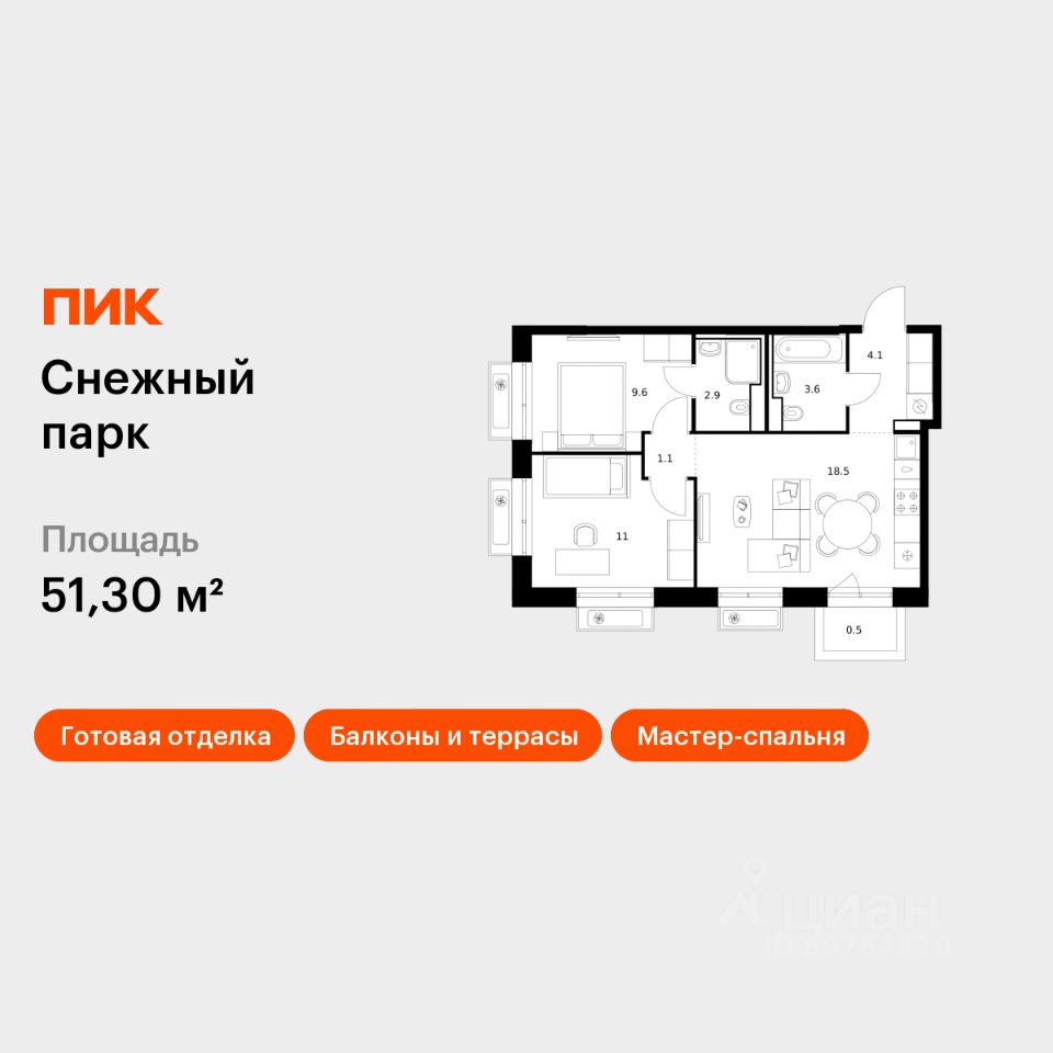Продаётся 2-комн. квартира площадью 51,3 кв.м на 13 этаже 25 этажного дома (Корпус 4, Секция 2) проекта ПИК Снежный парк. Светлый просторный подъезд на уровне земли, функциональная планировка, большие окна, c отделкой.