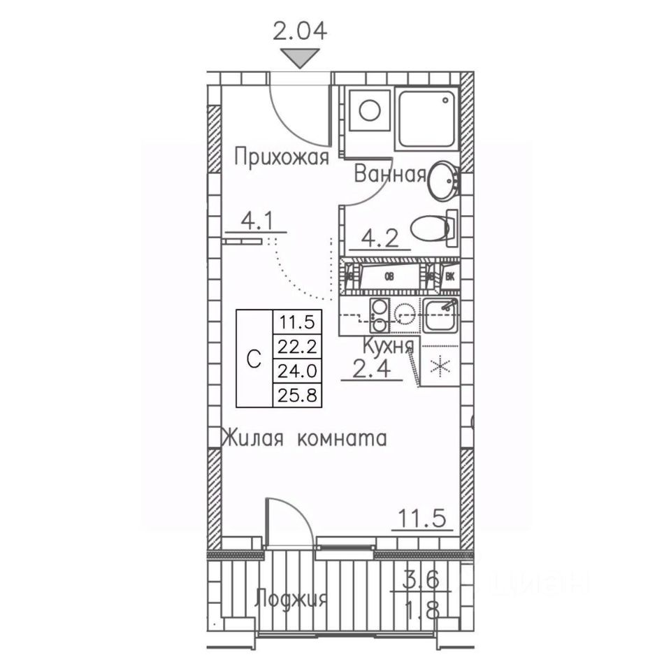Общая площадь25,8 м2