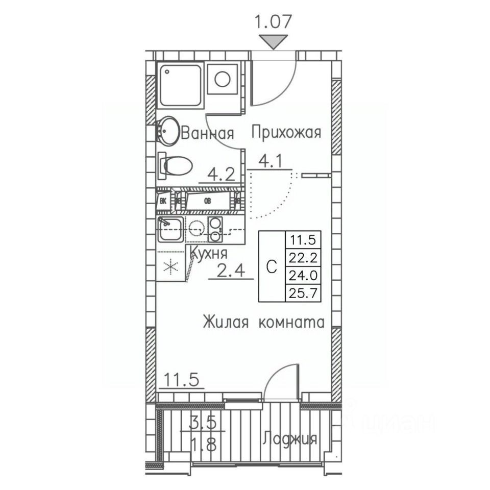 Продается студия с отделкой под ключ в ЖК ''Гринхилс''. Общая площадь квартиры — 25.7 кв. м, этаж 17 из 18. Тип дома — монолитный. Цена указана при 100% оплате.