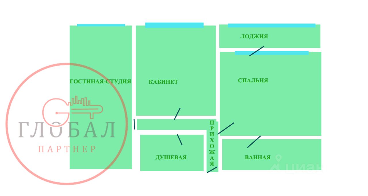 Идеальная планировка для семьи: Три изолированные комнаты предоставляют пространство для родителей, ребёнка и возможность обустроить кабинет или гостевую зону.
