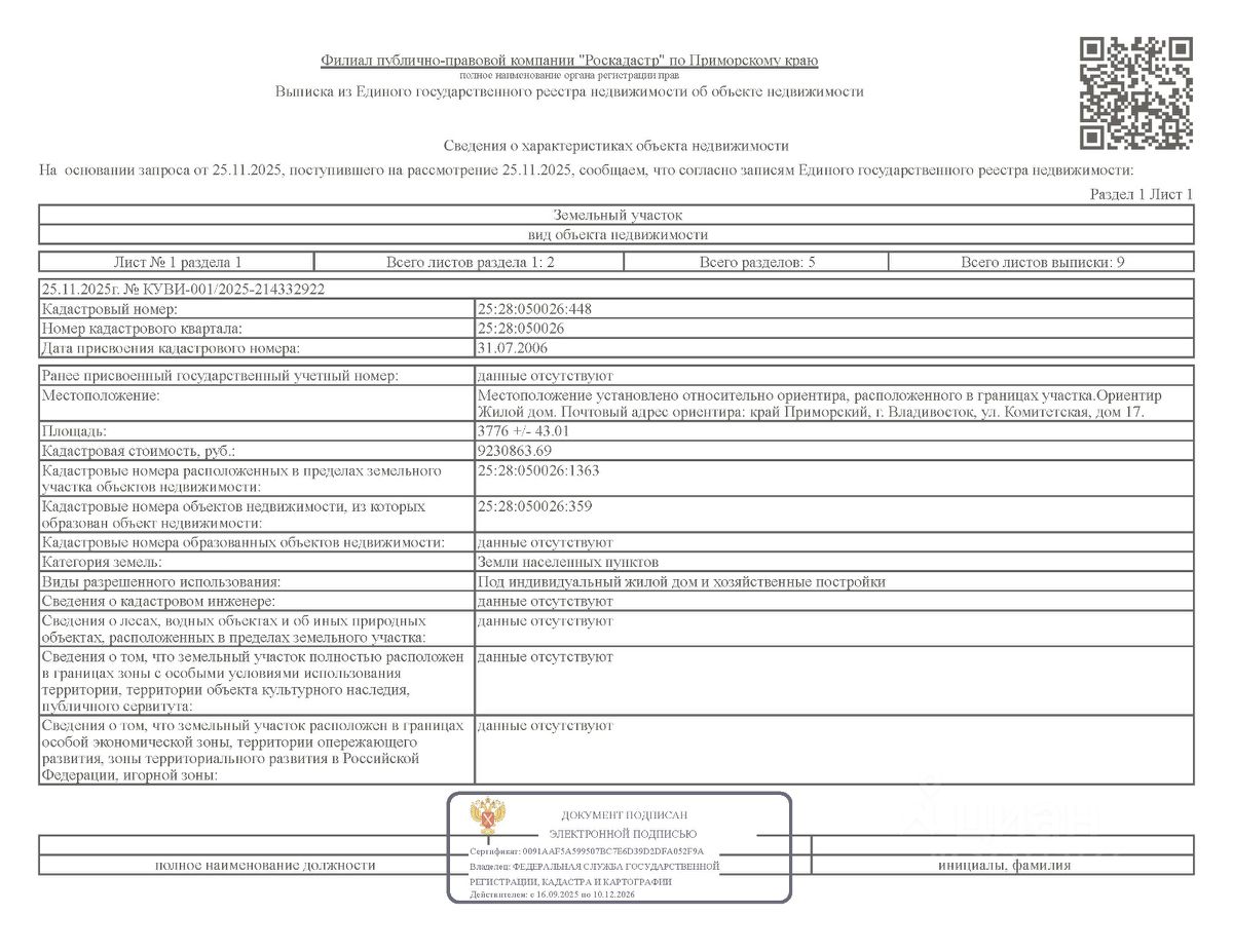 Участок и дом во владении с 1963 года. Приватизирован в 2006 году.