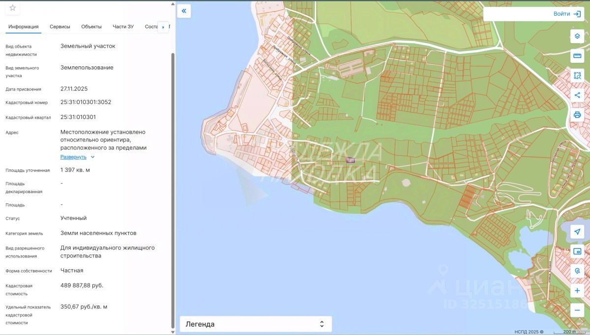Кадастровый номер: 25:31:010301:3052