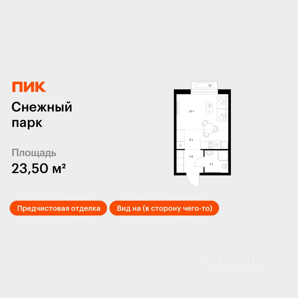 Продаётся квартира-студия площадью 23,5 кв.м на 20 этаже 25 этажного дома (Корпус 3, Секция 1) проекта ПИК Снежный парк. Светлый просторный подъезд на уровне земли, функциональная планировка, большие окна, предчистовая отделка.