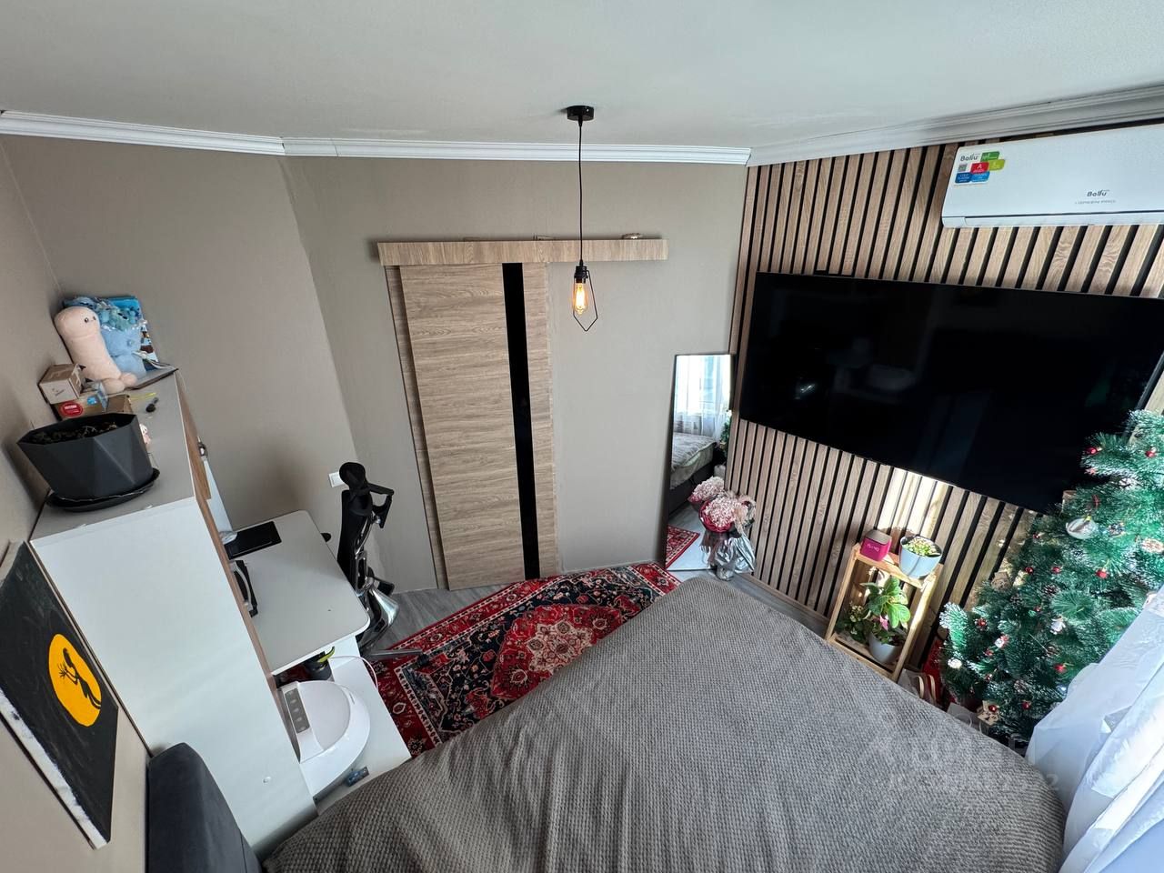 Пятый этаж девятиэтажного дома с лифтом. Квартира тёплая и светлая, окна выходят на светлую сторону. Пространство не ощущается студией-коробкой за счёт грамотного разделения на зоны: кухня с прихожей и отдельная зона спальни. Для такого метража планировка редкая и действительно удобная.