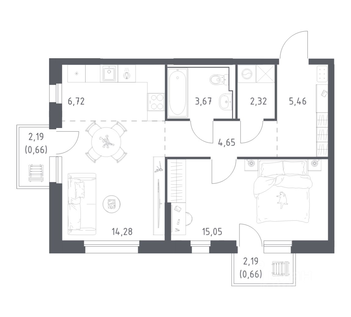 Строим кварталы для жизни с заботой о будущем. Предлагается 1-комнатная квартира комфорт-класса площадью 53.47 кв.м в корпусе 5КВ на 15-м этаже, в жилом комплексе ''Квартал Нейбута''.