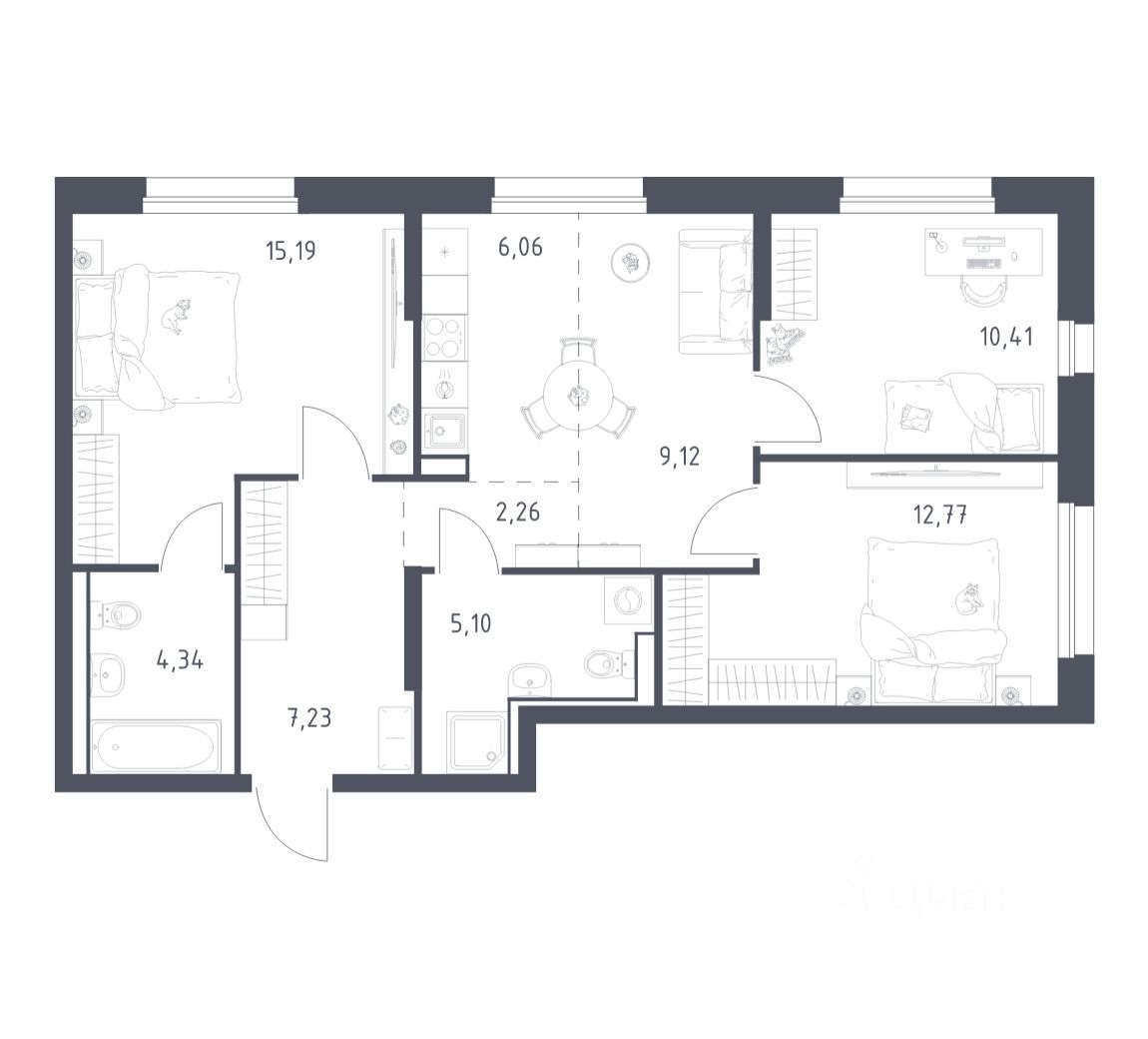 Выбирайте свое место для счастливой жизни: от уютной студии до просторной 3-комнатной квартиры. Хотите погрузиться в творческий процесс ремонта? Присмотритесь к вариантам предчистовой отделки. Если хотите сразу отпраздновать новоселье, поручите нам работы по отделке. Мы установим двери, окна и сантехнику, положим ламинат и плитку. На стенах будут обои, которые можно перекрашивать до 8 раз. По вашему желанию мы подготовим в вашей квартире все для комфортной жизни. Откройте дверь своим ключом и пройдитесь по комнатам. Там уже будет мебель, светильники и другие элементы декора. А на кухне бежевых оттенков есть все, чтобы сразу приготовить вкусный ужин для близких.