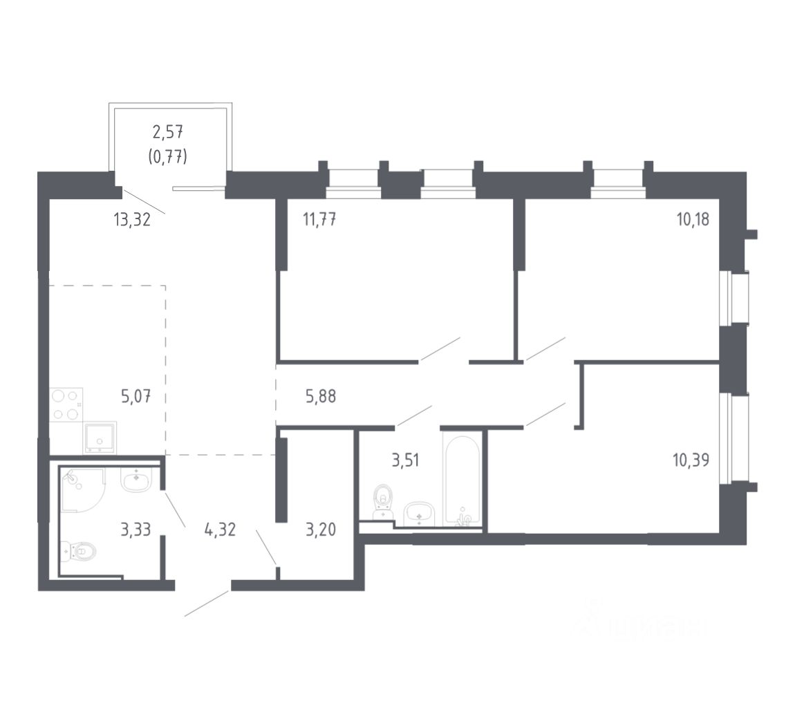 Строим кварталы для жизни с заботой о будущем. Предлагается 3-комнатная квартира комфорт-класса площадью 71.74 кв.м в корпусе 1.1КВ на 7-м этаже, в жилом комплексе ''Квартал Нейбута''.