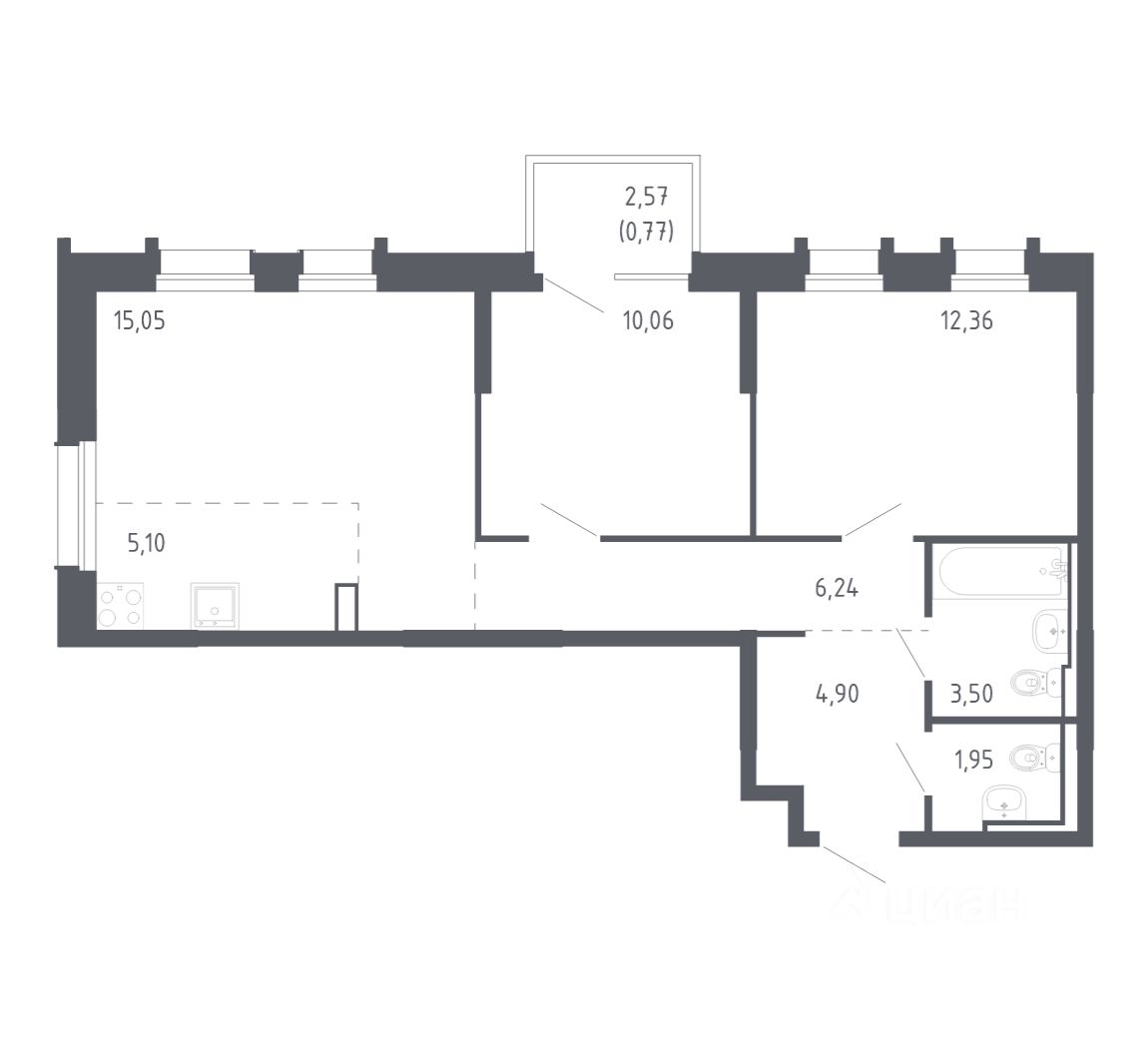 Строим кварталы для жизни с заботой о будущем. Предлагается 2-комнатная квартира комфорт-класса площадью 59.93 кв.м в корпусе 1.1КВ на 16-м этаже, в жилом комплексе ''Квартал Нейбута''.