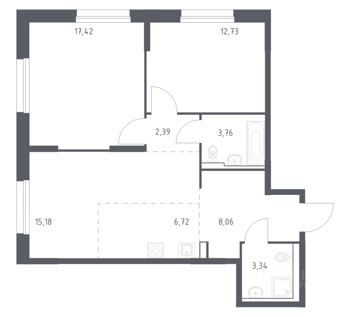 Отделка по вашему желанию: предчистовая, готовая или вариант без нее. Если хотите воплотить собственные идеи в интерьере, выбирайте опцию — без отделки. Тогда квартира станет чистым холстом для вашего творчества. В варианте с отделкой мы установим натяжные потолки, поклеим обои под покраску и положим ламинат светлых нейтральных тонов, в санузлах будут керамическая плитка и керамогранит. Расставляйте любимые книги на полках и зовите друзей отпраздновать новоселье.