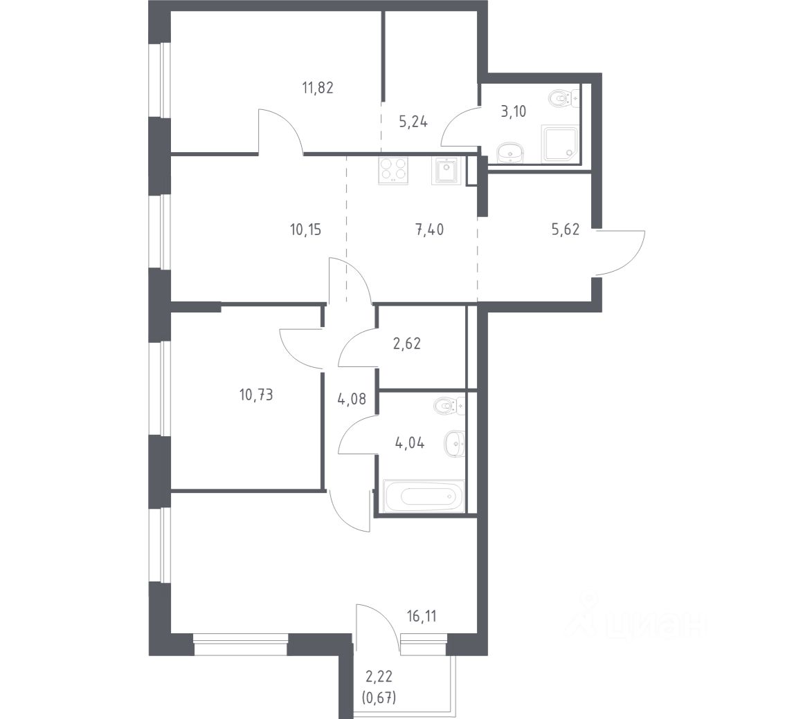 Отделка по вашему желанию: предчистовая, готовая или вариант без нее. Если хотите воплотить собственные идеи в интерьере, выбирайте опцию — без отделки. Тогда квартира станет чистым холстом для вашего творчества. В варианте с отделкой мы установим натяжные потолки, поклеим обои под покраску и положим ламинат светлых нейтральных тонов, в санузлах будут керамическая плитка и керамогранит. Расставляйте любимые книги на полках и зовите друзей отпраздновать новоселье.