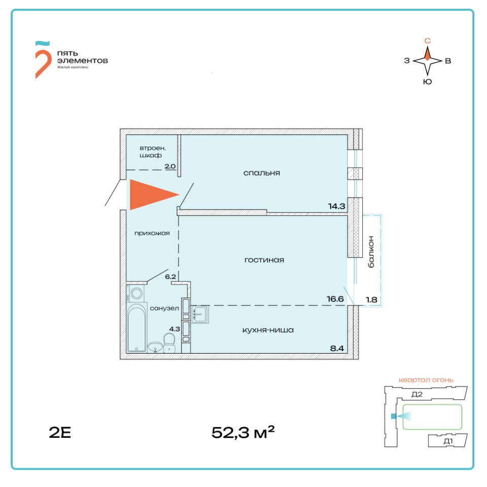 Общая площадь52,3 м2