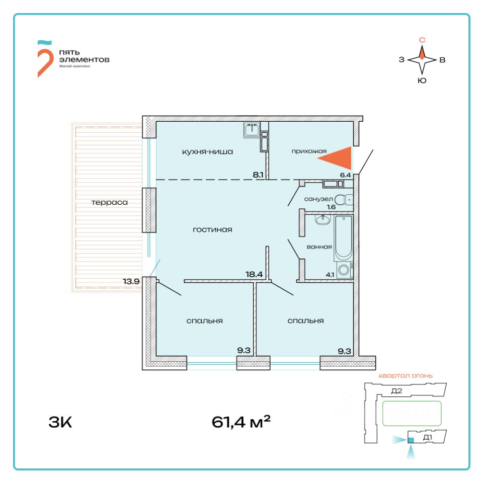 Общая площадь61,4 м2