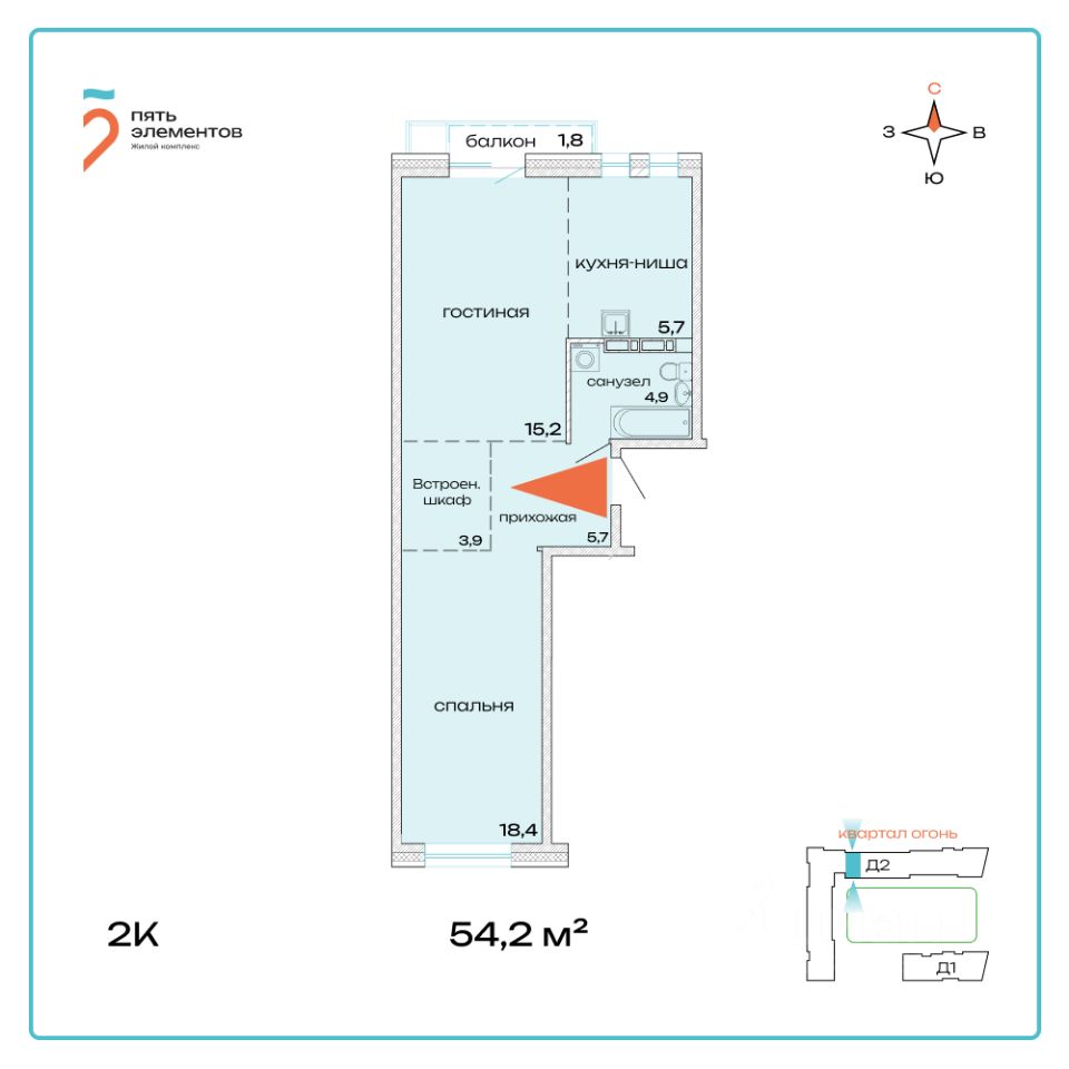 Общая площадь54,2 м2