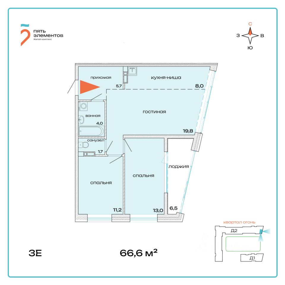 Общая площадь66,6 м2