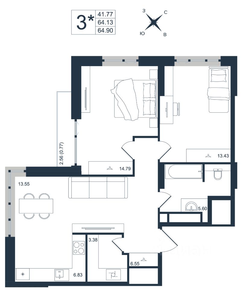 Продаётся 3-комнатная квартира в строящемся доме (Дом 1), срок сдачи: III-кв. 2027, общей площадью 64.9 кв.м., на 19 этаже. Новый жилой комплекс ''Архитектор'' от группы компаний ''Девелопмент-Юг'' расположен по адресу: г. Владивосток, по ул. Бежецкая.