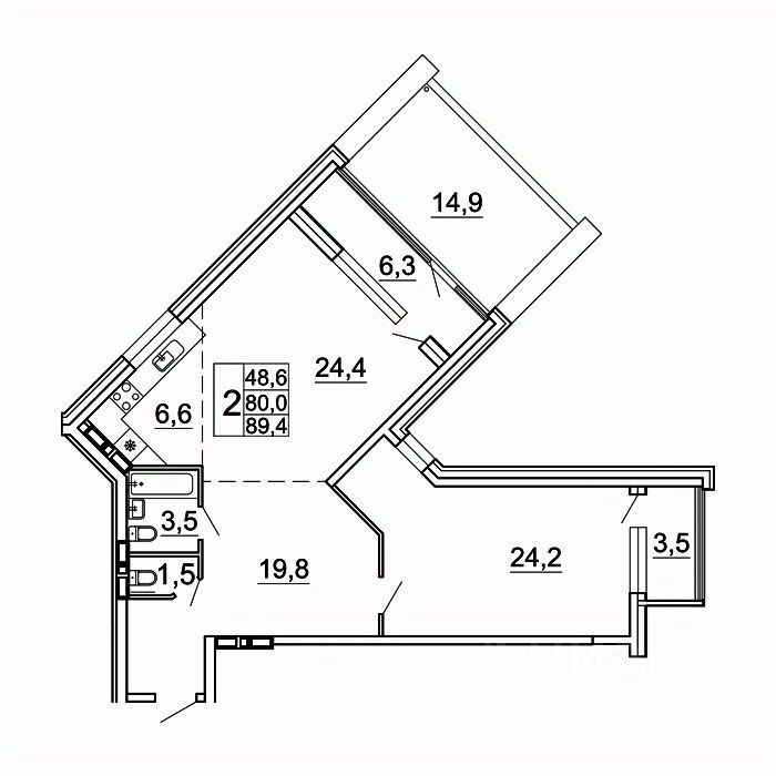 продам 2-к, Лесная, 1в/116 584 898 ₽
