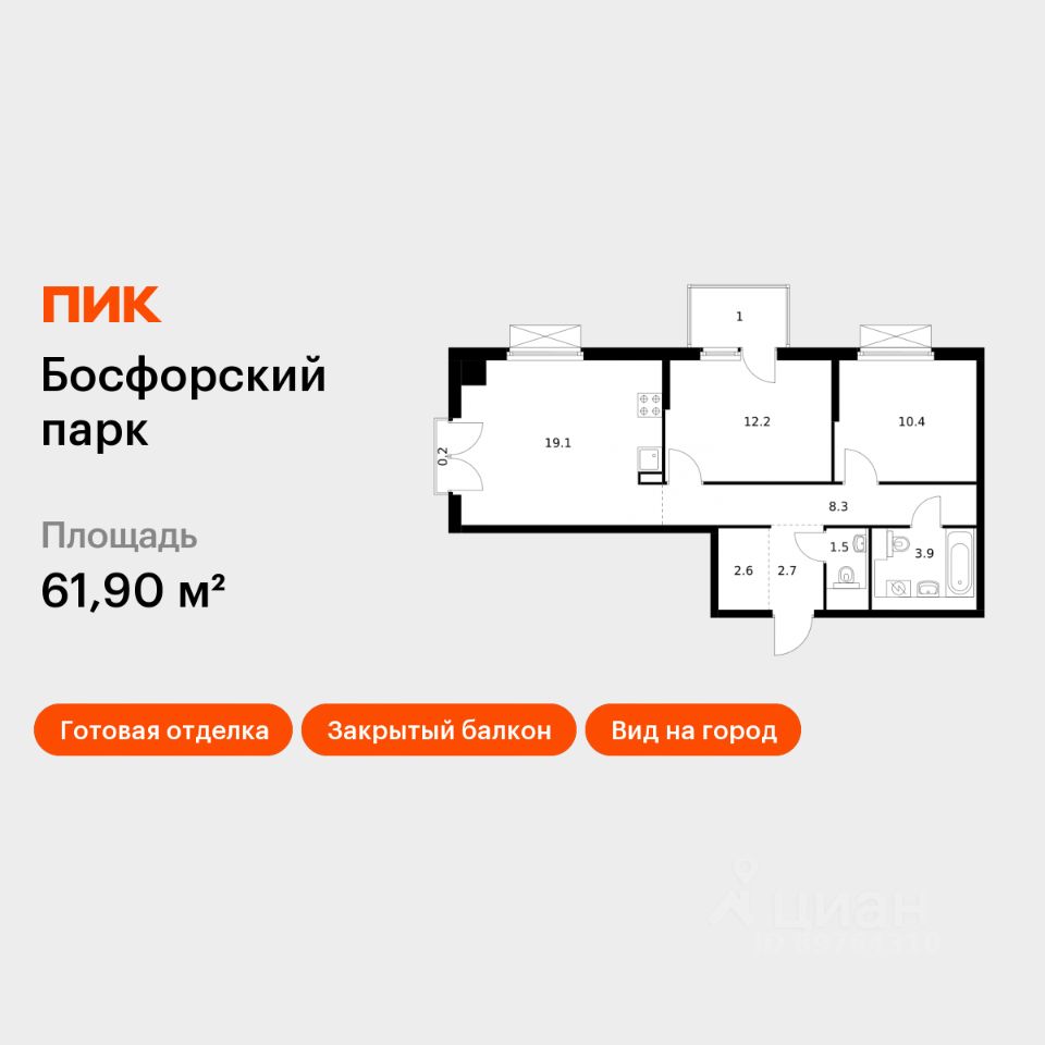 Продаётся 2-комн. квартира площадью 61,9 кв.м на 5 этаже 9 этажного дома (Корпус 4, Секция 1) проекта ПИК Босфорский парк. Светлый просторный подъезд на уровне земли, функциональная планировка, большие окна, c отделкой.