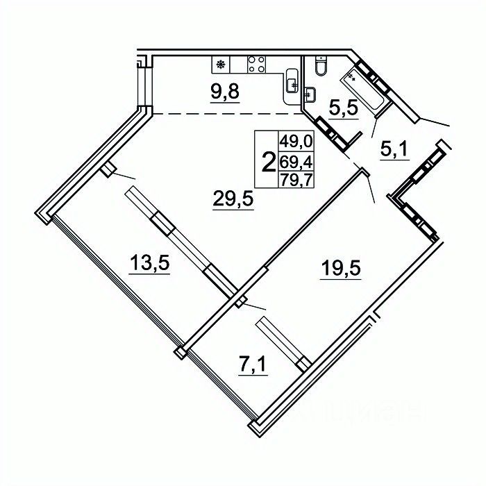 продам 2-к, Лесная, 1в/115 583 017 ₽