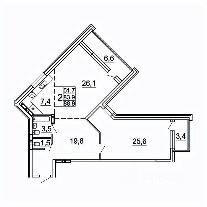 продам 2-к, Лесная, 1в/114 641 730 ₽