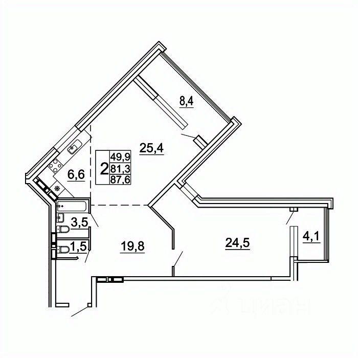 продам 2-к, Лесная, 1в/114 433 702 ₽