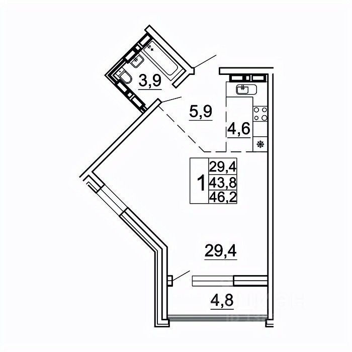 продам 1-к, Лесная, 1в/19 425 895 ₽