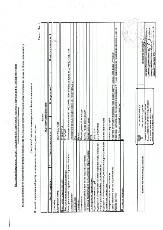 Продается земельный участок кадастровый номер: 25:28:020034:55 общей площадью 1037 кв. м. по адресу: г. Владивосток, ул. Розничная, д. 27 (рядом со спорт. комплексом Гавань и торговым портом. И индивидуальный жилой дом 29,7 кв.м. кадастровый номер: 25:28:020034:228. На участке дом с адресом, сделано межевание, установлен забор из проф. листа. Разрешенное использование: для малоэтажной застройки 4 этажа. (Возможно изменить вид разрешенного использования, для использования участка в деловых - бизнес целях.
