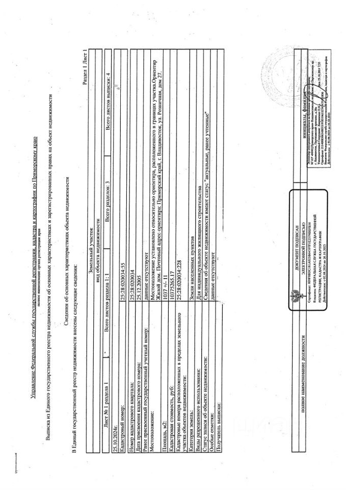 Продается земельный участок кадастровый номер: 25:28:020034:55 общей площадью 1037 кв. м. по адресу: г. Владивосток, ул. Розничная, д. 27 (рядом со спорт. комплексом Гавань и торговым портом. И индивидуальный жилой дом 29,7 кв.м. кадастровый номер: 25:28:020034:228. На участке дом с адресом, сделано межевание, установлен забор из проф. листа. Разрешенное использование: для малоэтажной застройки 4 этажа. (Возможно изменить вид разрешенного использования, для использования участка в деловых - бизнес целях.