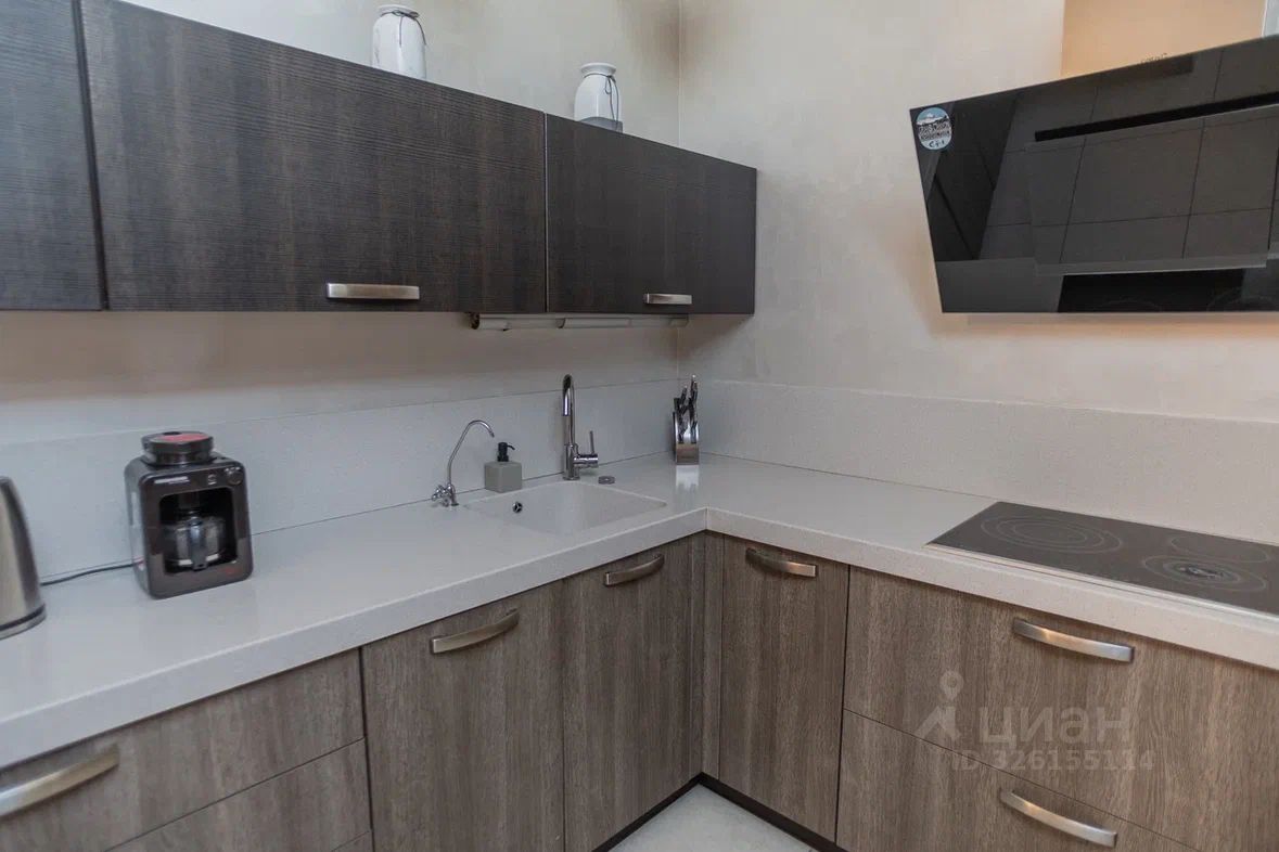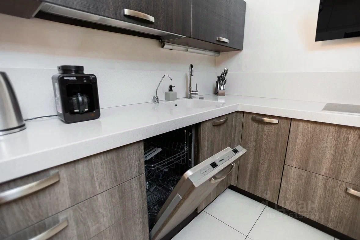 Жильё полностью укомплектовано всем необходимым для комфортного проживания — можно заезжать и жить без дополнительных покупок. На кухне есть вся бытовая техника: плита, духовой шкаф, холодильник, посудомоечная машина и микроволновка, а также приятные мелочи, которые делают жизнь комфортнее: кофеварка, гриль и полный комплект посуды.
