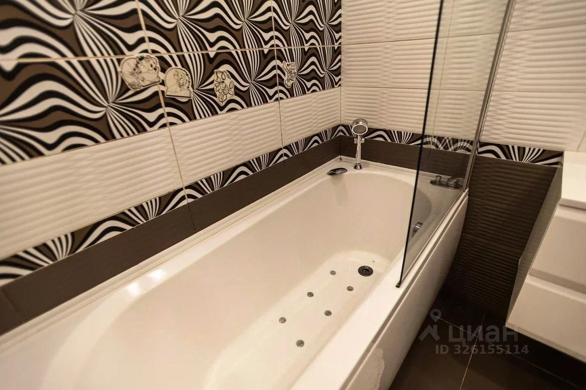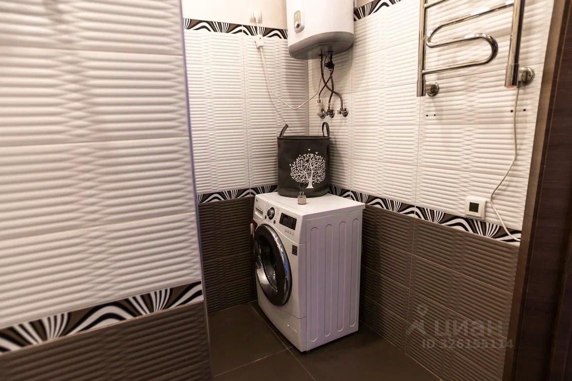 Санузел оборудован стиральной машиной и ванной с гидромассажем.