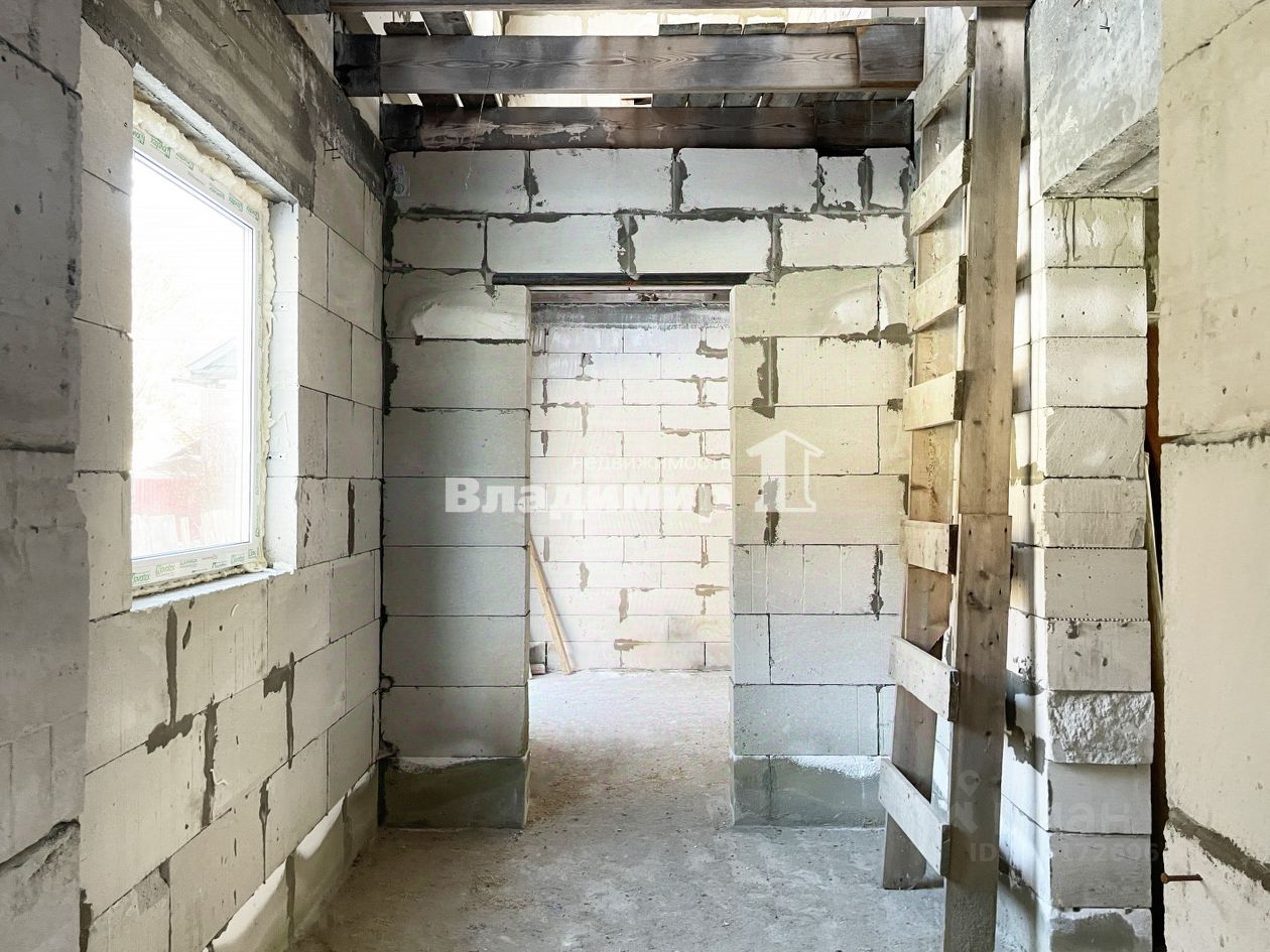 Характеристики дома: Фундамент монолитная плита, материал стен газоблоки, перекрытие межэтажное установлены несущие деревянные балки, год постройки 2025. Планировка I этажа: кухня-гостиная, жилая комната, санузел, техническое помещение, холл с лестничной клеткой и коридор, II этаж свободной планировки (три жилые комнаты, гардеробная, санузел и коридор).