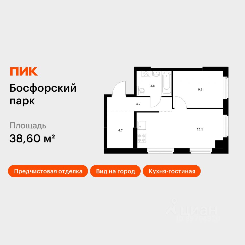 продам 1-к, Босфорский Парк ЖК, 58 557 620 ₽