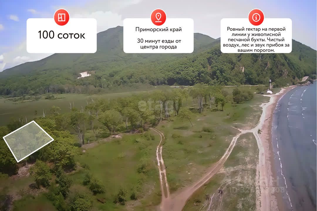 Уникальное предложение — участок земли площадью 1ГА с прямым выходом к песчаному пляжу в поселке Ольга, Приморский край.